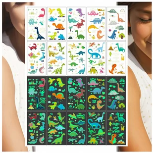 TATUAŻE ZMYWALNE ŚWIECĄCE W CIEMNOŚCI DINOZAURY BAJKOWE 10 WZORÓW ⭐⭐⭐⭐⭐ Zestaw tatuaży zmywalnych dla dziewczynki i chłopca. W komplecie znajduje się aż 10 różnych, wesołych motywów, które łatwo nakleić i bezpiecznie zmyć. Idealna zabawa na co dzień, urodziny czy przyjęcia dla dzieci.