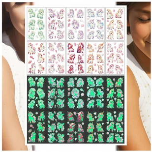 TATUAŻE ZMYWALNE ŚWIECĄCE W CIEMNOŚCI JEDNOROŻECE BAJKI 10 WZORÓW ⭐⭐⭐⭐⭐ Zestaw tatuaży zmywalnych dla dziewczynki i chłopca. W komplecie znajduje się aż 10 różnych, wesołych motywów, które łatwo nakleić i bezpiecznie zmyć. Idealna zabawa na co dzień, urodziny czy przyjęcia dla dzieci.