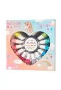 Zestaw lakierów do paznokci dla dzieci Jednorożec holenderskiej marki Souza! W jego skład wchodzi 12 buteleczek lakierów w pięknych kolorach: żółtym, 2 odcieniach moreli, 3 odcieniach różu, liliowym, 2 odcieniach niebieskiego, 2 odcieniach turkusu oraz seledynowym, a także arkusz. . .