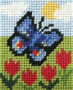 Zestaw do haftu Moje pierwsze wyszywanie Motylek. Zabawka. tkanina z nadrukiem, igła, włóczka, instrukcja, pakowane w woreczek foliowy z eurodziurką,rozmiar 17x20,5 cm