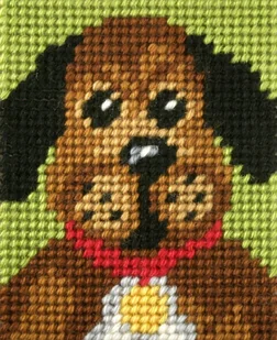 Zestaw do haftu Moje pierwsze wyszywanie Piesek. Zabawka. tkanina z nadrukiem, igła, włóczka, instrukcja, pakowane w woreczek foliowy z eurodziurką,rozmiar 17x20,5 cm
