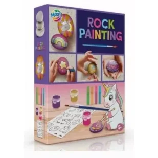 Kolorowy zestaw do malowania kamieni z uroczym jednorożcem.Zestaw zawiera: trzy kamienie4 mazaki3 farbkinaklejki Przeznaczone dla dzieci od 5 lat.