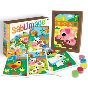 Zalecany wiek: 4-8 lat Sablimage to zabawne i artystyczne zajęcia, idealne do rozwoju kreatywności, zdolności manualnych i wyczucia kolorów. Sablimage to seria obrazów, które w bardzo łatwy sposób można stworzyć za pomocą kolorowego piasku posypanego na klejące powierzchnie. Kolekcja ta została stworzona, aby rozwijać zmysł koloru u małych dzieci za pomocą naturalnych materiałów. Bardzo cenione zajęcie, ponieważ zawsze jest zabawne i skuteczne.