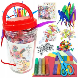 BARDZO DUŻY ZESTAW KREATYWNY DLA DZIECI WIELKI ZESTAW W NIETŁUKĄCYM SIĘ SŁOIKU - zestaw kreatywny to obszerny zestaw materiałów plastycznych w plastikowym za...