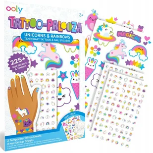 Zmywalne tatuaże i naklejki na paznokcie Ooly Tęczowe Jednorożce 225 szt Cechy Tatuaży zmywalnych i naklejek na paznokcie Ooly - Tęczowe Jednorożce: Wiek: od...