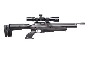 Wiatrówka karabinek REXIMEX Tormenta PCP Synthetic kal. 4,5mm Ekp - do 17J REXIMEX to firma turecka, powiązana produkcyjnie i kapitałowo ze znaną i cenioną w Polsce firmą KRAL ARMS. Obecnie, pod marką REXIMEX wprowadza ona na rynek serie doskonałych wiatrówek o wysokiej jakości wykonania i nowoczesnym wyglądzie. Reximex TORMENTA to wysokiej klasy karabinek rekreacyjny, z nowoczesnym polimerowym łożem pistoletowym, stalowym kartuszem o pojemności aż 380 cc spełniającym zarazem rolę kolby. To wiatrówka o zwartej, świetnie wyważonej konstrukcji, pozwalającej strzelać każdemu, bez względu na wiek i płeć.