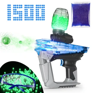 Pistolet na kulki żelowe automat niebieski CS-001 święcące kulki 1500 kulek + okulary