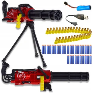 KARABIN AUTOMATYCZNY NA STRZAŁKI BEZPIECZNY OBROTOWY Wielka, automatyczna wyrzutnia strzałek piankowych z efektownym magazynkiem taśmowym i obrotową lufą. Posiada dwa tryby strzelania — automatyczny (seria) i manualny (1 obrót korbką = 1 strzał), zasilana akumulatorem Li-ion, wyposażona w składany dwójnóg i bogaty zestaw akcesoriów — gotowa do dynamicznych gier terenowych.