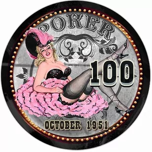 ANIMAZING Żeton October 1951 Ceramika Nominał 100 Nr kat. : 115C1755 Kolor: czarny Seria żetonów stylizowanych na lata 40./50. XX wieku z motywem tzw. Pin-up Girls.