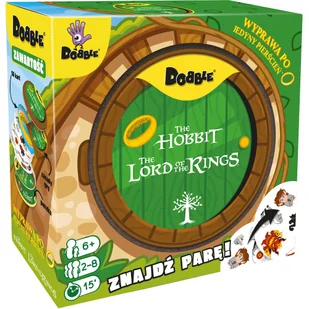 Dobble Władca Pierścieni Rebel. Gra. Szukaj par wśród bohaterów Hobbita i Władcy Pierścieni!Zabierz Froda, Sama, Gandalfa oraz Smauga gdzie tylko zechcesz i baw się, szukając par w popularnej grze towarzyskiej! Spójrz na pierwszą kartę, którą trzymasz w ręku oraz na tę, która leży na środku stołu. . .