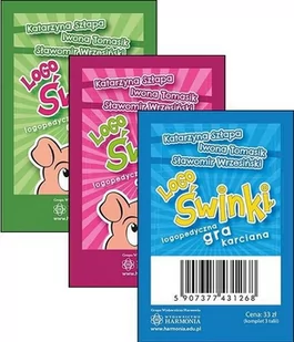 Logoświnki to gra wspomagająca terapię rotacyzmu między innymi poprzez utrwalanie wymowy głoski r po spółgłoskach oraz w nagłosie i między samogłoskami. Gra składa się z 3 zestawów po 52 karty: