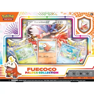 Wyrusz w przygodę po nowym regionie Paldea! \n Jak w każdym regionie, tutaj również możesz wybrać swojego startowego przyjaciela. \nTen zestaw idealnie wprowadzi Cię w nowe przygody i pozwoli skorzystać z mocy nowych Pokémonów. \n Wybierz pasujący do Ciebie typ i ruszaj w przygodę! \n Jeden produkt zawiera: \n \n \n 3 karty promo \n 1 karta oversize (wzór losowy) \n 4 boostery \n przypinka \n kod do gry online \n