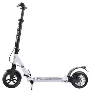 HM208T Nils Extreme to hulajnoga przeznaczona dla dzieci, młodzieży oraz dorosłych. Cechą charakterystyczną produktu marki Nils Extreme są dwa amortyzatory - przedni pionowy oraz tylny poziomy. Zapewniają one większy komfort podczas jazdy, minimalizują drgania oraz pochłaniają wstrząsy. Dzięki temu produkt bardzo dobrze sprawdzi się podczas przemieszczania się po nierównych powierzchniach. Hulajnoga wykonana została z aluminium, dzięki czemu jest bardzo lekka oraz wytrzymała.