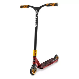 Hulajnoga wyczynowa Street Surfing Ripper Aluminiowy deck 6061 o wymiarach 50 x 11 cm Trwałe gripy ODI Poczwórne zaciski kolumny kierownicy w systemie HIC Compression Kierownica Cro-Mo 540 mm Koła PU 100 mm /88A o dużym odbiciu z anodowanym aluminiowym rdzeniem Łożyska ABEC-9 Metalowe logo 3D Hamulec nożny typu performance Ripper Bloody Machine to profesjonalna hulajnoga stworzona do najcięższych trików i najbardziej spektakularnych akrobacji. Kierownica Cro-Mo zapewnia wytrzymałość, niską wagę i świetne tłumienie wibracji. Koła wykonane są z poliuretanu o wysokiej przyczepności na aluminiowym rdzeniu, aby zapewnić szybkie toczenie i trwałość. Przyczepny deck zapewnia stabilne oparcie dla stóp i wytrzyma ślizgi oraz balans na murkach i poręczach.