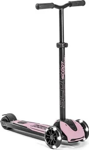 Hulajnoga Highwaykick 5 LED Rose, Scoot & Ride Dopracowana w każdym szczególe Highwaykick 5 LED to innowacyjna, trójkołowa balansowa hulajnoga austriackiej marki Scoot & Ride, wzbogacona o LED-owe kółka, które świecą w czasie jazdy. Kolekcja utrzymana jest w stylowej, czarno-pastelowej kolorystyce. Idealna dla aktywnych dzieci w wieku od 5 lat, nastolatków, a nawet dla ich rodziców czy dorosłego do maksymalnej wagi 80 kg i 180 cm wzrostu! Rośnie razem z dzieckiem Dzięki aluminiowej rączce o regulowanej wysokości, hulajnogę można dopasować do wzrostu jeżdżącego. 4-warstwowa, długa i szeroka podstawa z powierzchnią antypoślizgową gwarantuje mniejsze zużycie materiałów, wytrzymałość i bezpieczeństwo nawet przy cięższych użytkownikach. Hulajnoga jest łatwa w prowadzeniu, doskonale zbalansowana, stabilna i zwrotna, a jej koła utworzone systemem PUAir (rodzaj kompresji powietrza) są ciche, wytrzymałe, mają wysoką przyczepność i zapewniają amortyzację podczas jazdy na każdym rodzaju podłoża.