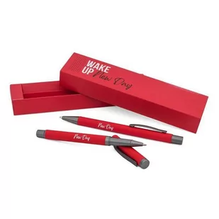Zestaw składający się z aluminiowego długopisu i pióra kulkowego o przyjemnym w dotyku, satynowym wykończeniu. Wkład w kolorze niebieskim. W kolorowym kartonowym etui.