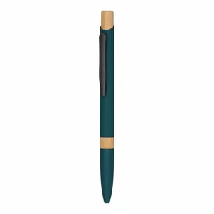 Aluminiowy długopis BAMBOO SYMPHONY: matowa metalowa obudowa, bambusowy pierścień w uchwycie i bambusowy przycisk, mechanizm naciskowy, duży wkład z niebiesk...