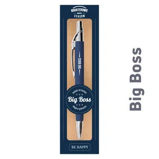 Długopis Big Boss - idealny prezent dla lidera Stylowy metalowy długopis z napisem Big Boss to praktyczny i elegancki upominek. Trwały nadruk wykonany metodą tampodruku jest subtelny w dotyku. Dołączone ozdobne pudełko z sentencją nadaje mu wyjątkowego charakteru. Specyfikacja: Napis: Big Boss Wymiary: 141 x 15 mm Materiał: metal Wkład wymienny, kolor: niebieski Perfekcyjny gadżet dla każdego szefa!