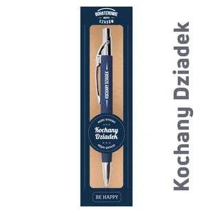 Męski długopis na prezent z dedykowanym napisem Kochany Dziadek Przed Wami długopis do zadań specjalnych, który przystosowany jest wyłącznie do prawdziwie męskiej dłoni! Mamy nadzieję, że zostanie świetnym upominkiem dla faceta, który lubi dedykowane prezenty. Długopis posiada personalizowany napis o treści: Kochany Dziadek. Dedykacja została wykonana metodą tampodruku, dzięki czemu napis jest niewyczuwalny pod palcem. Oprócz tego, na ozdobnym pudełku znajduje się specjalna sentencja. Mamy nadzieję, że gadżet zostanie ulubionym długopisem faceta, któremu go podarujesz. SPECYFIKACJA DŁUGOPISU: Dedykowany napis: Kochany Dziadek Napis wykonany metodą tampodruku, niewyczuwalny w dotyku Personalizowana grafika Prezentowe pudełko z dedykowaną sentencją Wymiary: 141 x 15 mm Materiał: metal Wymienny wkład Kolor wkładu: niebieski