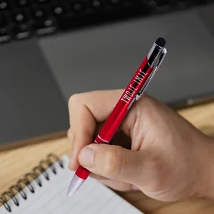 Metalowy długopis z gumką TOUCH PEN do pisania po tablecie, smartfonie, który w dolnej części ma wygrawerowane imię lub napis. Długopis ma aluminiowy korpus ...
