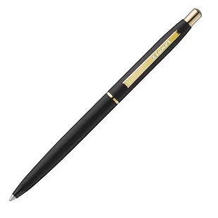 Elegancki długopis automatyczny Metalowy Szwajcarski mechanizm przyciskowy Pozłacane elementy Na gruby wkład (typu Zenith) Kolor obudowy: czarny Kolor wkładu: niebieski