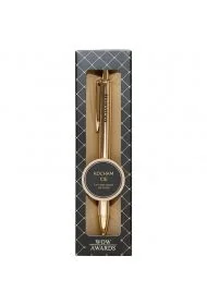 Unikalny napis wygrawerowany na długopisie, dodaje osobistego akcentu. Specyfikacja: Materiał: Plastik, metal Złoty design Kolor: czarno-złoty Wymienny wkład Kolor wkładu: niebieski Opakowanie: