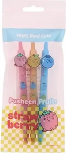 PUSHEEN długopis - 3 szt. Długopisy z nakładką kotka Pusheen. Kotki ukryte w owocach. wkład: niebieskiwkłady wymienne3 szt. w zestawieWiek: