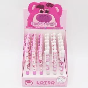 Długopis ścieralny "Lotso Strawberry" Długopis idealny dla dzieci uczących się pisać (edukacja wczesnoszkolna, klas I-III) szczegóły długopis automatyczny materiał: tworzywo sztuczne/silikon kolor tuszu: niebieski wkład 0,05 mm DŁUGOPIS WYSYŁAMY LOSOWO CENA DOTYCZY 1 SZTUKI