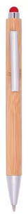 Długopis TOUCHY z korpusem pokrytym bambusem. Wyposażony w mechanizm naciskowy, z kolorową końcówką do obsługi ekranu dotykowego. Niebieski tusz.