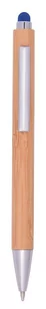Długopis TOUCHY z korpusem pokrytym bambusem. Wyposażony w mechanizm naciskowy, z kolorową końcówką do obsługi ekranu dotykowego. Niebieski tusz.