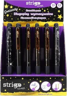 Długopis wymazyw. Gwiazdy (24szt) niebieski STRIGOStrigo ➡️ Firma i usługi/Biuro i Reklama/Artykuły piśmiennicze/Długopisy ✔️ Wymazywalny, automatyczny długopis STRIGO z serii Gwiazdy. Wyposażony w gumowy uchwyt, który zapewnia komfort użytkowania. Zakończony gumką, która umożliwia estetyczną korektę napisanego tekstu. Wystarczy potrzeć napisany tekst i bez użycia korektora, możemy poprawić błędy.