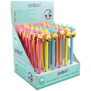 FUN&JOY Dane techniczne długopis wymazywalny z dekorem w kształcie donuta wkład niebieski szerokość linii pisania: 0,7 mm mix kolorów obudowy: miętowy, różowy, żółty display 36 sztuk karton: 8 displ. Zapoznaj się z bogatą ofertą długopisów na Empik. com i bądź gotowy na powrót do szkoły!