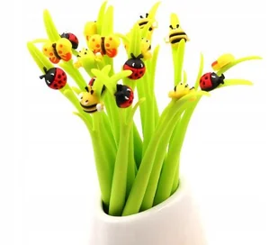 Długopisy PSZCZOŁA motylek biedronki pszczółka osa OWADY osy na trawie