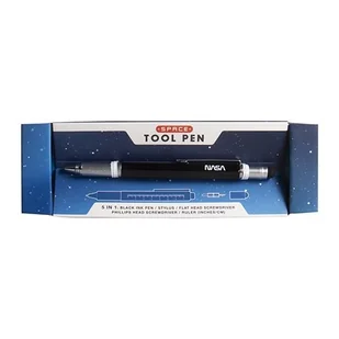 Pióro wielofunkcyjne NASA Space. Czarny długopis atramentowy 5 w 1 zawiera również rysik, śrubokręt płaski, śrubokręt krzyżakowy i linijkę w pudełku prezentowym.