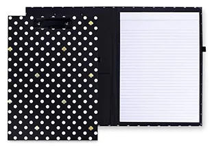Kate Spade New York Foliowe etui A4 z niskoprofilowym klipsem, czarne profesjonalne etui zawiera notatnik w linie, szlufkę na długopis i kieszeń, kropki