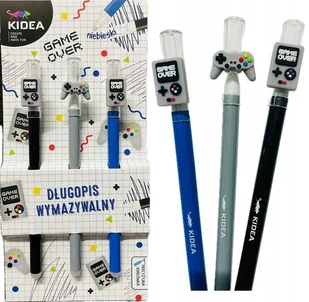 KIDEA Długopisy wymazywalne niebieskie zestaw 3 szt. GAME OVER