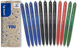 Pilot Pen Super Grip G długopis z naciskiem, zestaw 12 sztuk w rozmiarze M (niebieski, czarny, czerwony, zielony)