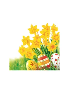 SERWETKI DAISY POL-MAK 33X33 WIELKANOC BIAŁE I ZŁOTE PISANKI 20 SZTUK