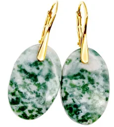 Eleganckie kolczyki z agatem mszystym na złotym srebrze. Kolczyki wykonane z oryginalnych kamieni: agat mszysty. Pochodzenie: Indie. Oszlifowane na połysk z zachowaniem pierwotnej urody.