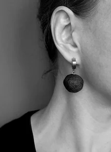 Duże czarne kolczyki kule wykonane ręcznie zgodnie z ideą zero waste - z papieru z odzysku Idealne dla kobiety ceniącej odważną, nowoczesną biżuterię w industrialnym stylu. Wiszące elementy mają unikalną, ...