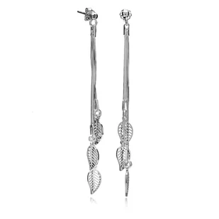 Długie kolczyki srebrne próby 925 na sztyfcie. Wykonane z trzech łańcuszków różnej długości typu snake z listkami ażurowymi. Stwórz biżuterię na zamówienie j...