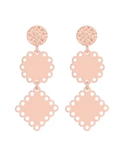 Złote długie kolczyki wykonane z młotkowanego kółeczka i rozetek. Zapinane na sztyft. Kolczyki posiadają zapięcia (baranki). Całość wykonana ze srebra 925 po...