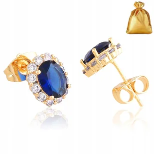 ELEGANCKIE ZŁOTE KOLCZYKI ZE STALI CHIRURGICZNEJ GRANATOWE MARKIZY+CYRKONIE