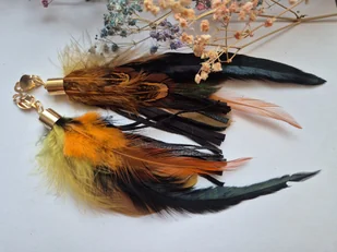 Klipsy brązowe długie lekkie pióra rękodzieło