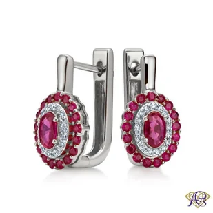 Kolczyki białe złoto Au 585 z rubinem i diamentami