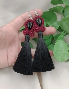 Kolczyki bordowe czarne z onyksami chwosty, sutasz