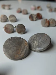 Stworzyłam ręcznie kolekcję ceramiki. Spinki do mankietów, które wypaliłam z trzech kolorów gliny zmieszanych w tzw. marmurki, następnie poszkliwiłam, zatem mienią się w świetle. Mikołajki i święta za pasem :) je ...