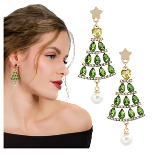 Kolczyki Długie Wiszące Zielone Choinki Złote z Cyrkoniami Świąteczne // Kolczyki złote WISZĄCE długie choinki ŚWIĄTECZNE cyrkonie prezent na ŚWIĘTA ✨ Najważniejsze cechy: ✔ Złote, wiszące kolczyki z perłą ✔ Z ozdobnymi cyrkoniami ✔ Lekkie i wygodne ✔ Zapięcie typu sztyft Te wyjątkowe kolczyki w kształcie choinek to połączenie świątecznego uroku i elegancji. Zdobione zielonymi cyrkoniami i delikatnymi perełkami, subtelnie mienią się przy każdym ruchu, przyciągając wzrok i dodając magii Twojemu wyglądowi. Złota oprawa nadaje im klasyczny charakter, a ich lekka forma sprawia, że są wygodne przez cały dzień. Idealne jako świąteczny dodatek lub prezent dla miłośniczki oryginalnej biżuterii z nutą blasku.