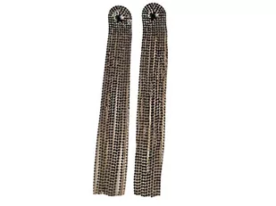 Elegancki wiszacy wzór kolczyków z czarnymi cyrkoniami. Platerowane w odcieniu żółtego złota. Wymiary: Długość całkowita ok: 17 cm Średnica kółka ok: 2,2 cm ...