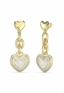 Zapięcie typu sztyft gwarantuje bezpieczne mocowanie. Kolczyki GUESS Amami Wiszące Serce to idealny wybór dla kobiet ceniących sobie romantyczny styl, elegancję i wysoką jakość biżuterii. Marka : Guess Model: JUBE04024JWYGWHT/U Kolor: Złote Materiał: